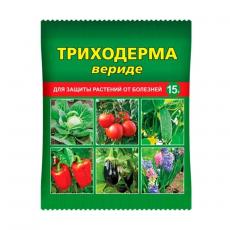 Новый эффективный биопрепарат для защиты растений от болезней. В его основе — дружественные культурным растениям микроскопические грибы, подавляющие более 60 видов(!) болезнетворных микробов. Защищает от корневых и плодовых гнилей, черной ножки, белой и серой гнили, макроспориоза, фузариоза, фитофтороза, антракноза, вилта и др. Попадая во влажную почву, споры «Триходермы» прорастают, выделяя природные «антибиотики» и обеззараживая почву вокруг. При этом препарат обладает длительным действием: уничтожает покоящиеся и зимующие стадии патогенов. Попадая на поврежденный участок больного растения, споры прорастают, питаясь больной тканью, и одновременно лечат растение. Применяется для защиты картофеля, томатов, свеклы, капусты, перцев, огурца, лука, баклажанов, садовой земляники, роз, гвоздик, астр, луковичных цветов и др. «Триходерма вериде» не только защищает растения, но повышает их урожайность, лежкость и качество продукции, стимулирует корневое питание, улучшает плодородие почвы, повышает всхожесть семян. Применяют путем полива под корень, опрыскивания растений, замачивания семян и посадочного материала, прямого смешивания с почвой.
