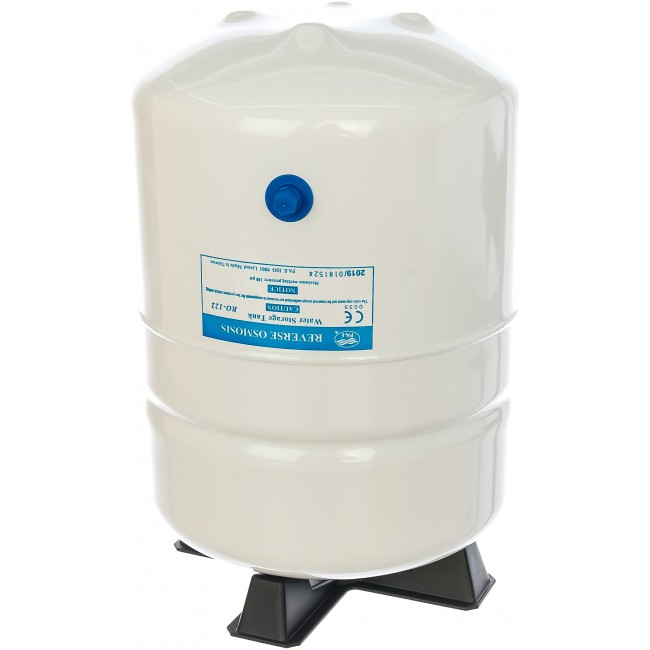 RO 132 - металлический накопительный бак объемом 12 л для систем обратного осмоса Металлический накопительный бак RO 132 имеет общий объемом 15 л используется во многих системах обратного осмоса (Filter 1, Aqualine, Leader Filter’) для аккумулирования и подачи очищенной воды на отдельный кран установленный на мойке. Изготовленн накопительный бак RO 132 из металла окрашеного в белый цвет, внутри корпуса накопительной емкости находится грушевидная мембрана из пищевой резины, которая заполнена воздух (давление от 0,6 до 0,8 атм) для выдавливания воды находящеся в емкости бака при открытии крана на мойке.