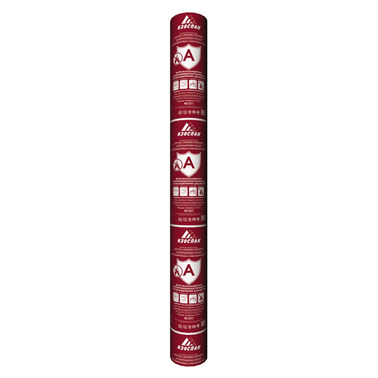 Ветро-влагоизоляция Изоспан А – мембрана, устойчивая к воздействию пара, влаги и сильных порывов ветра. Основной задачей строительного материала является полная защита слоев утеплителя и деталей конструкции стен от повышенного уровня влажности. Благодаря инновационной технологии изготовления, пленка совершенно не препятствует испарению влаги из прослойки утеплителя. Имеется высокая степень растяжимости и прочности на разрыв. Использование мембраны позволяет сохранить оптимальные характеристики теплоизоляции и целостность всех конструкций здания.