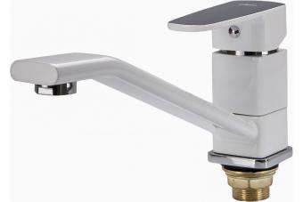 Смеситель для кухни Ekko с гайкой, белый E49301 предназначен для крепления на раковину или прилегающую поверхность столешницы. Подходит для разных интерьеров и типов моек.