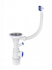 Сифон для Мойки Элит 112 с нерж.чашей, отводом для стиральной машины и переливом