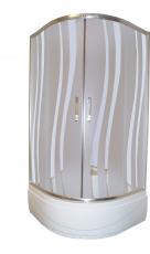 Душевой уголок, средний поддон 30см с задней частью в форме сиденья высотой 45см, 5 мм матовоестекло с рисунком "волна",полированный алюминиевый профиль,ручки из нержавеющей стали, двойной ролик.