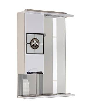 Шкаф-зеркало для ванной комнаты Oника из серии Флорена шириной 62 см. Наполнение - однодверный ящик справа, полка, подсветка. Фасад - фрезерованный, шлифованный МДФ с покрытием пленкой ПВХ.