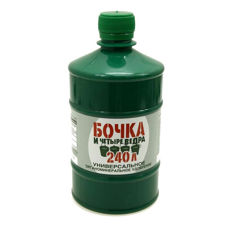 Универсальное удобрение Бочка и четыре ведра 600 мл – органоминеральное удобрение для корневых и внекорневых подкормок, содержит гуматы