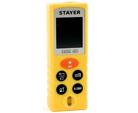 Дальномер лазерный, Stayer LDM-40 34956, 5 функций – это высокоточный прибор для быстрого и простого измерения линейных расстояний, площадей и объемов. Позволяет проводить весь цикл измерений одному человеку, значительно ускоряя выполнение разметочных работ и повышая точность полученных данных. Дальность измерения 40 метров.