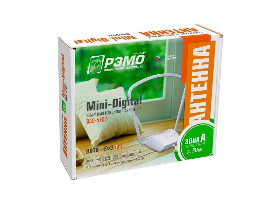 Антенна TV комнатная, активная 33db питание от ресивера, подставка+присоски MINI DIGITAL BAS-5107-5V