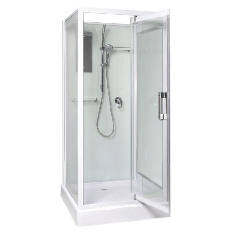 Размеры – 90х90х215 см (Кабина имеет высоту 200 см. Но при одетом верхнем душе высота 215 см) Преимущества – стильный минималистский дизайн, толстые ударопрочные стекла 6 мм, удобная универсальная распашная дверь 6 мм. БЕЗСИЛИКОНОВАЯ СБОРКА. Открытая душевая кабина квадратной формы, стандартных размеров 90х90 см, универсальная, дверь открывается на себя, оборудованная универсальной штангой для верхнего и ручного душа 2 в 1. Стекла закаленные, травмобезопасные, толщиной 6 мм. Поддон низкий 15 см, акриловый, в комплекте с сифоном. Задние стенки - непрозрачное крашеное белое стекло. Фронтальные и боковые стекла - прозрачное стекло. Производство – Ривер (Россия).