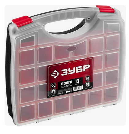 Органайзер со съемными лотками ЗУБР ВОЛГА-13 38034-13 удобен для хранения мелочей в виде небольшого крепежа, метизов или соединителей.