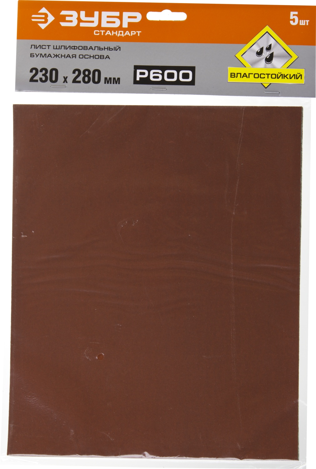 Бумага Р 600 наждачная ткан. основа водостойкая 230х280мм 5шт Зубр
