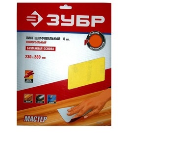 Бумага наждачная Р 40 230 х 280 мм бумажная основа 5шт Зубр