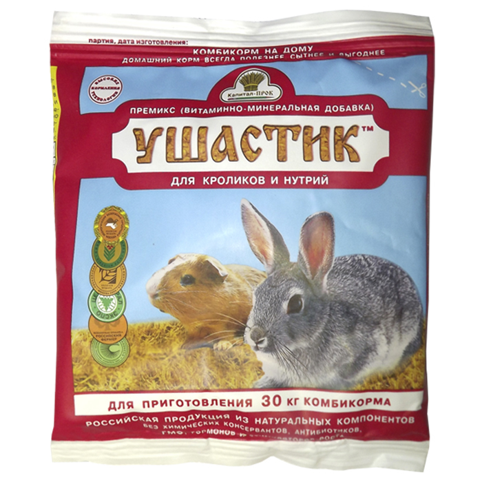 Витаминно-минеральная добавка в виде премикса для кроликов и нутрий (шиншилл и других растительноядных пушных зверей) прекрасно сбалансирована по витаминам и микроэлементам, которая: