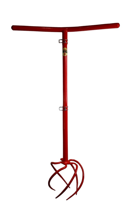 Основа Культиватор Master-bur – прочный металлический стержень. В его нижней части закреплены изогнутой формы зубья, а сверху – удобная ручка. Высота ее может быть отрегулирована. От 70 см до 120 см.