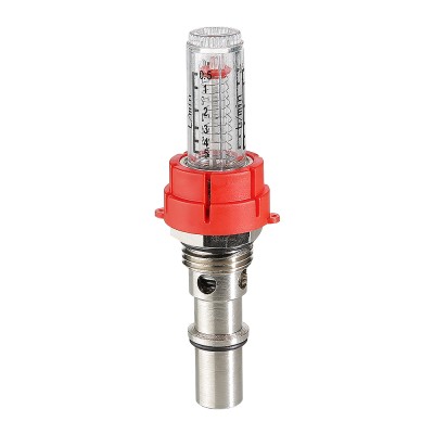 (VT.AC674.V) Настроечный клапан с расходомером (ротаметром) для коллекторных блоков VTc.589. Предназначен для индикации и регулировки расхода теплоносителя в присоединенных контурах напольного или радиаторного отопления при наладке (гидравлической балансировке) системы. Шкала прозрачной колбы отградуирована в диапазоне расхода от 0,5 до 5,0 л/мин. Текущее значение расхода определяется по положению индикаторной шайбы. Расходомер можно разобрать и прочистить при загрязнении.