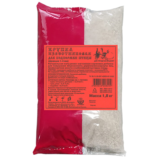 Кормовая добавка Крупка известняковая для подкормки птицы 1,8кг Артикул 048811 89 ₽ шт Поторговаться В наличии
