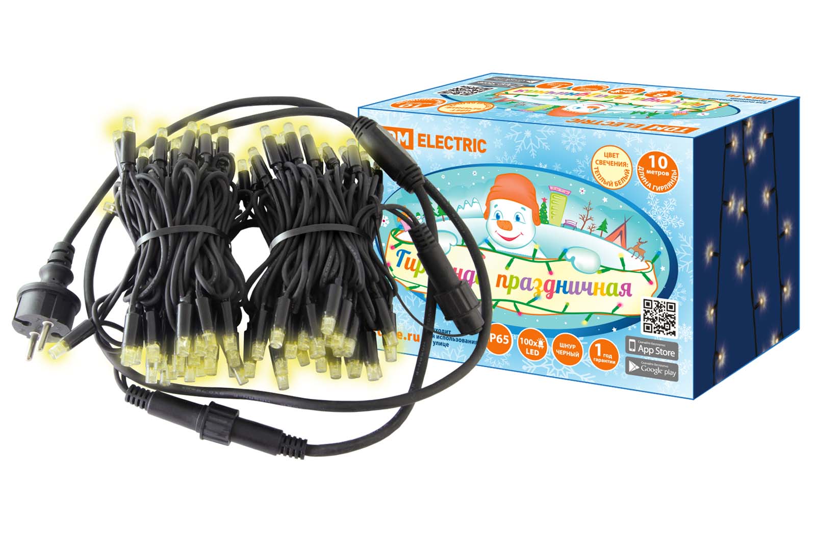 Гирлянда 100LED 10м уличная IP65 тёплый белый цвет SQ0361-0042