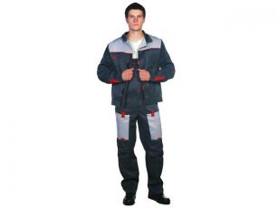 Куртка имеет укороченный силуэт с притачным поясом. Застегивается она на молнию, защищенную цельноскроенной планкой. По двум сторонам от застежки-молнии расположены накладные карманы, в которых удобно располагать документацию, необходимые инструменты.