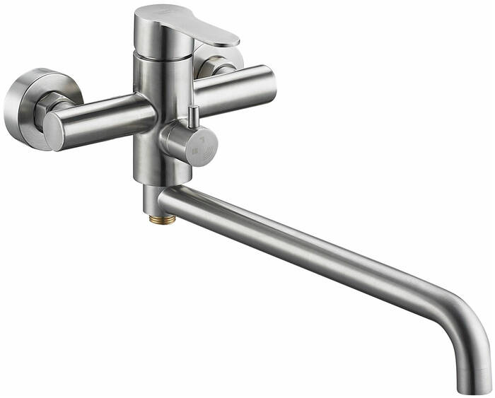 Корпус изготовлен из нержавеющей стали по новейшей технологии «литье под давлением», что значительно увеличивает срок эксплуатации смесителя. Используется бесшумный керамический картридж Ф35 с повышенным ресурсом, а так же аэратор смягчающий и экономящий расход воды. Отлично сочетается в ванных комнатах стиля hi-tech.