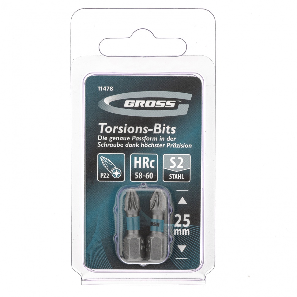 Бита PZ2 25 торсионная для ударных шуруповёртов Gross 2шт