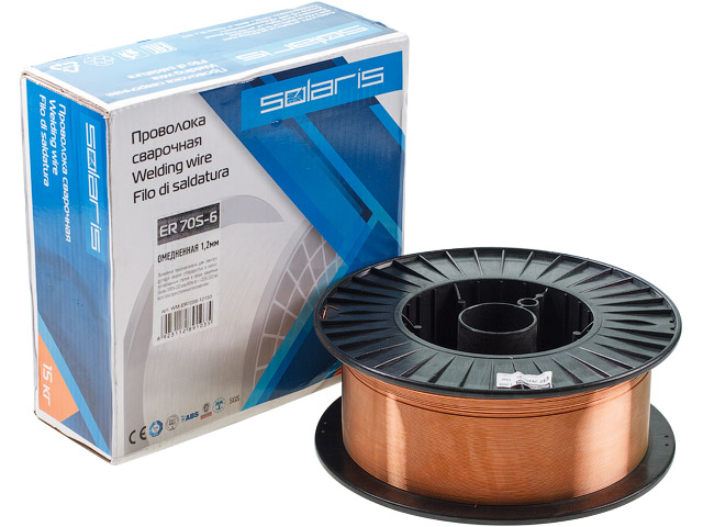Проволока сварочная омедненная ER 70S-6 ф1,2мм (катушка D200 5 кг) SOLARIS