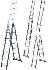 По своей конструкции алюминиевая трехсекционная лестница 3х8 схожа на обыкновенную лестницу-стремянку, но без площадки и имеет третью выдвигающуюся секцию консольного вида. Таким образом, лестница из 3-х секций обеспечивает устойчивость изделия, позволяя при этом залезть на большую высоту до 5 метров. Так же такую модель можно применять как приставную лестницу.