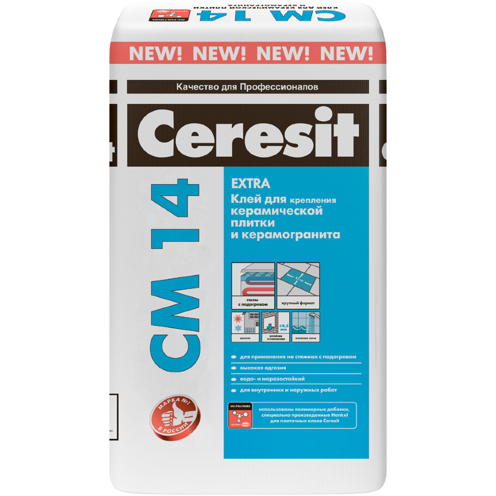 Плиточный клей Церезит СМ 14 применяется для быстрого приклеивания керамических и каменных плиток с поглощением влаги 3% на ровных поверхностях(полах и стенах), снаружи и внутри помещения.