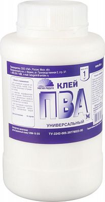 Клей ПВА-М универсальный применяется для склеивания изделий из бумаги, картона, кожи, тканей. Подходит для приклеивания линолеума, ковролина, облицовочной плитки, синтетических стеновых покрытий на бумажной основе, стекловолоконных, виниловых и бумажных обоев, пробки, серпянки, строительных сеток и бинтов. Может применяться для приклеивания декоративного бумажно-слоистого пластика к ДВП, ДСП, МДФ и др., а также для увеличения водонепроницаемости и повышения прочности бетонных, штукатурных и шпаклевочных составов.