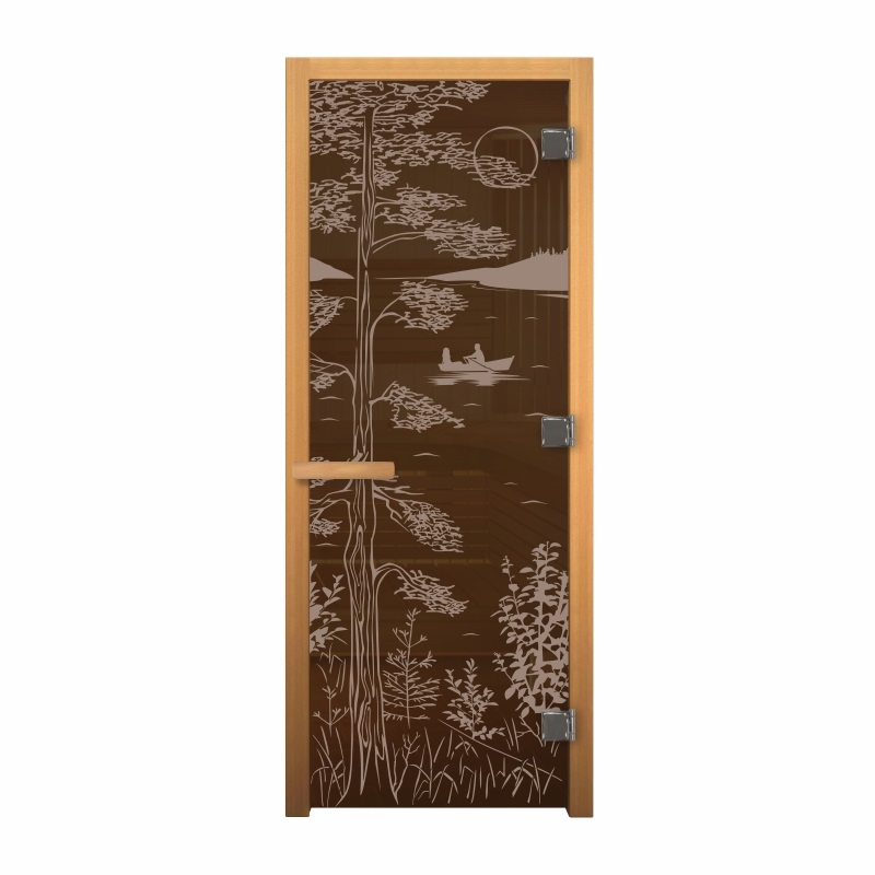 Дверь стеклянная Бронза "Тайга" 1900 х 700 х 8мм Осина правая